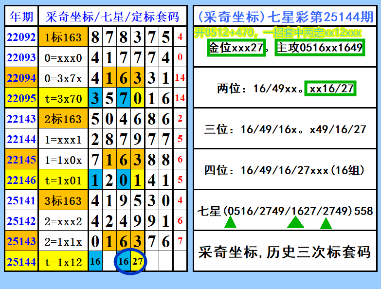 (采奇坐标)视频经典回顾,七星彩第144期,一招套中两定xx12xxx