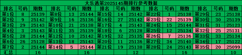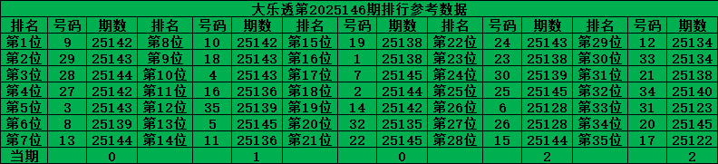 综上所诉超级大乐透第2025146期推荐号码: