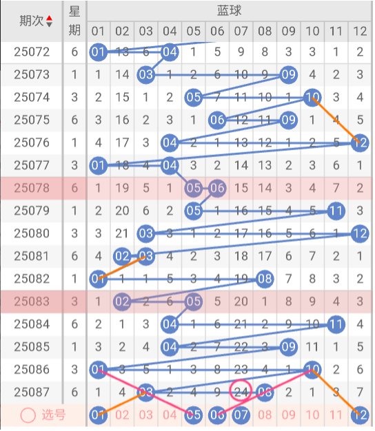 本期可关注质数或热偶, 后区推荐关注号码:01、05、06、07、12。