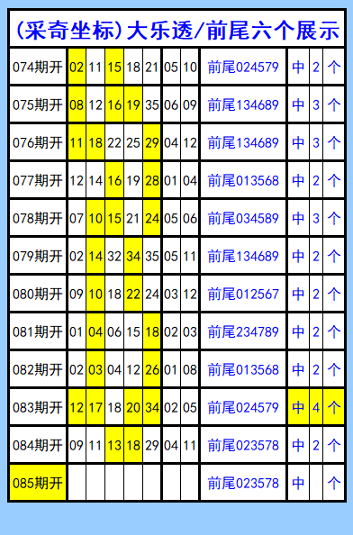 大乐透第085期图文(采奇坐标),前尾六个展示