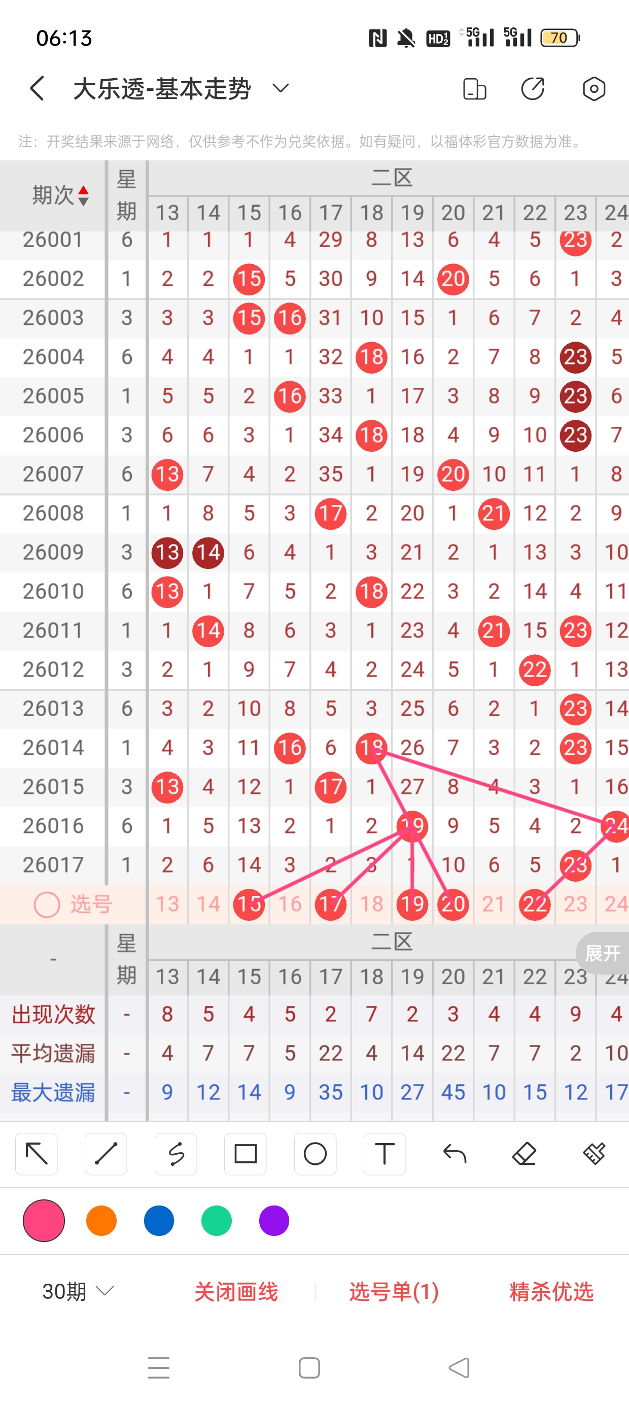 26017期开奖结果:4、5、10、23、31+7、12,奇偶比:3:2,大小比2:3,和值85,012路032,邻孤传0邻5孤0传,同尾号无,传号无,连号4、5。总结完毕,下面开始本期分析。