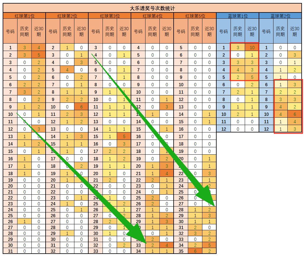 第5位,25-35是热门范围,历史同期热门号码为35,近期热门号码为34,建议重点关注22-29-34;