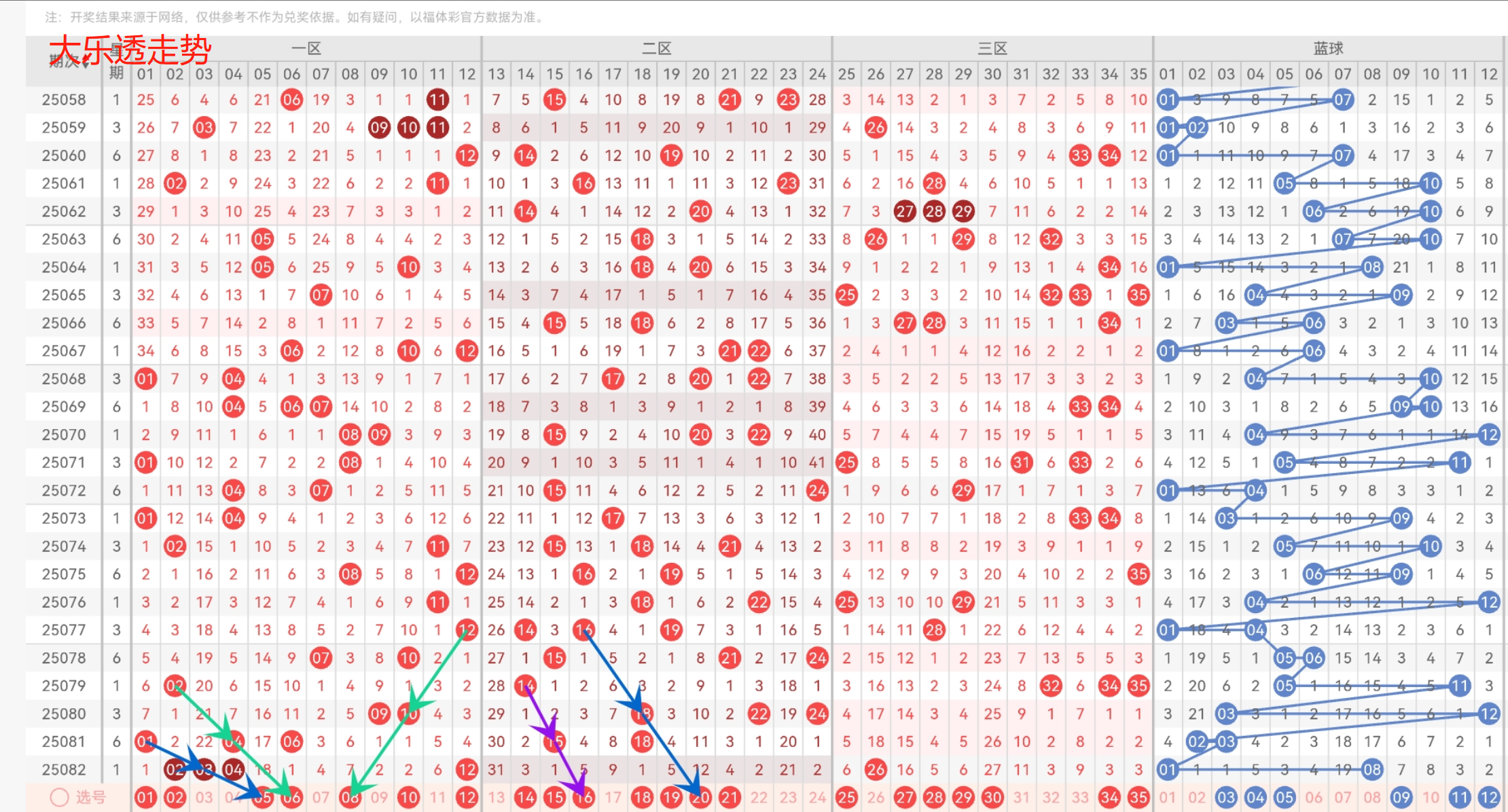 推荐大底:一区:1-2-5-6-10,二区:14-15-16-18-20;三区:25-27-29-30-34;蓝区4-5-9-11-12