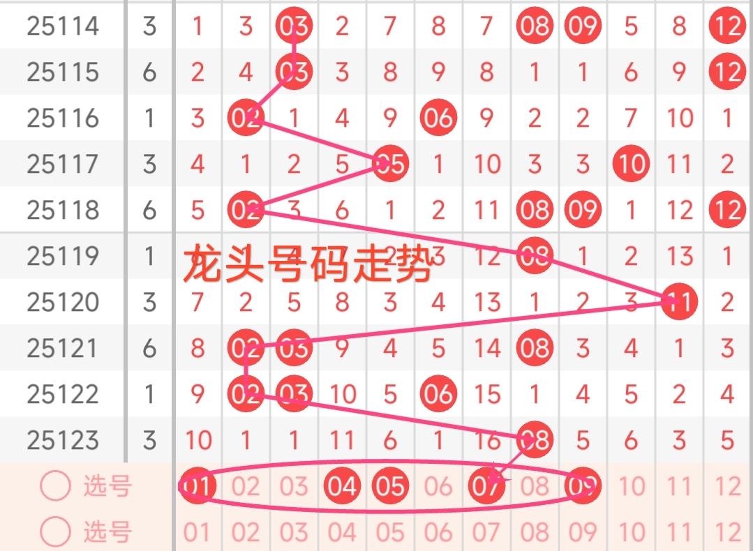 上期龙头号码为08,振幅上升了6点,开出偶数号码。从近期龙头号码的走势来看,近期龙头号码波动频繁。上期龙头为08,偶数号码。从近期龙头号码走势来看,近期龙头号码走势主要在 01 - 10 区间内波动。其中,小号码出现的频率相对较高。本期龙头号码有望继续在红一区这个区间内产生,预计本期龙头号码会在红一区01 - 12之间选择。本期还需注意连续多期漏出的号码,需重点关注,有回补龙头号码的趋势。 综合考虑,本期龙头号码推荐关注:01、04、05、07、09。
