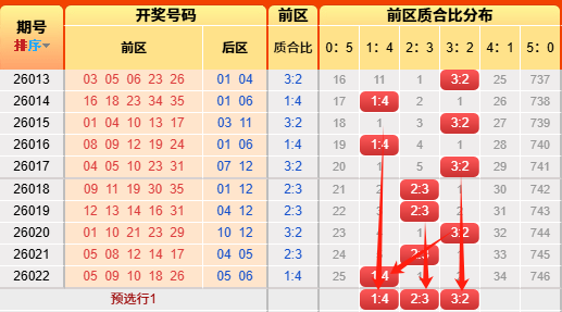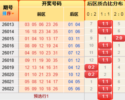 上期后区开出质合比为1:1。