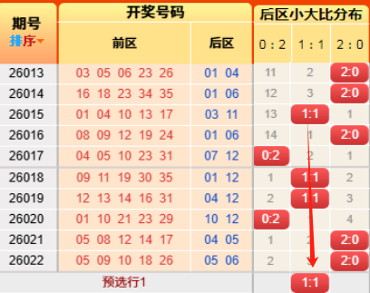 上期后区开出小大比为2:0