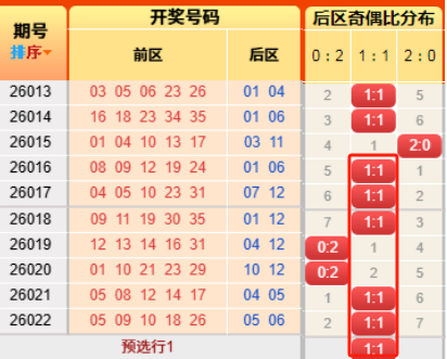 上期后区开出奇偶比为1:1,推测正确