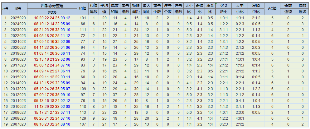 下图为大乐透彩种诞生以来每年的023期各类数据以及历年同日期开奖数据,各位大佬及彩友们请拿走~