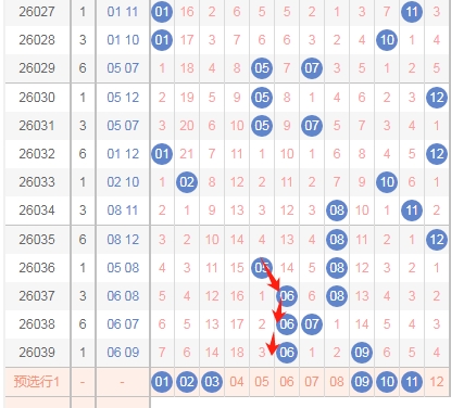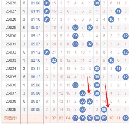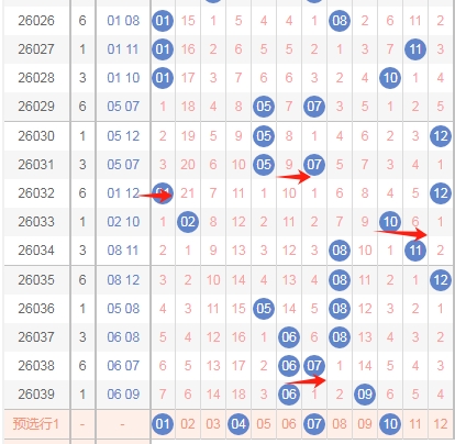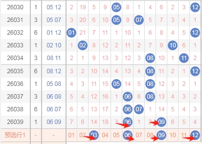 上图是体彩大乐透后区开奖号码走势分布图,我标注出来的数字都是0路球数字03 06 09 12上期开出的全0路球数字组合,那么本期继续出全0路球数字的组合机会少,所以本期不看全0路球数字的组合。