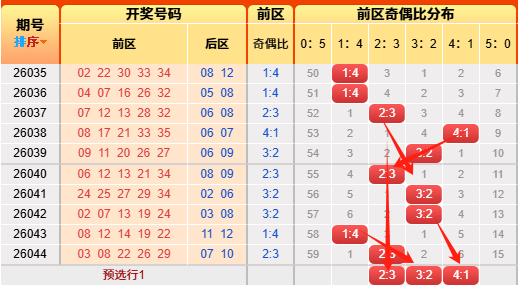 上期后区开出奇偶比为1:1,推测正确。