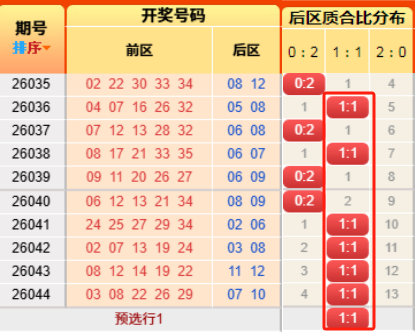 上期后区开出质合比为1:1,推测正确。