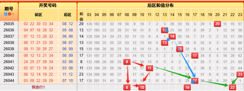 上期开出17,命中,本期根据上图蓝球和值参考8 10 16 22