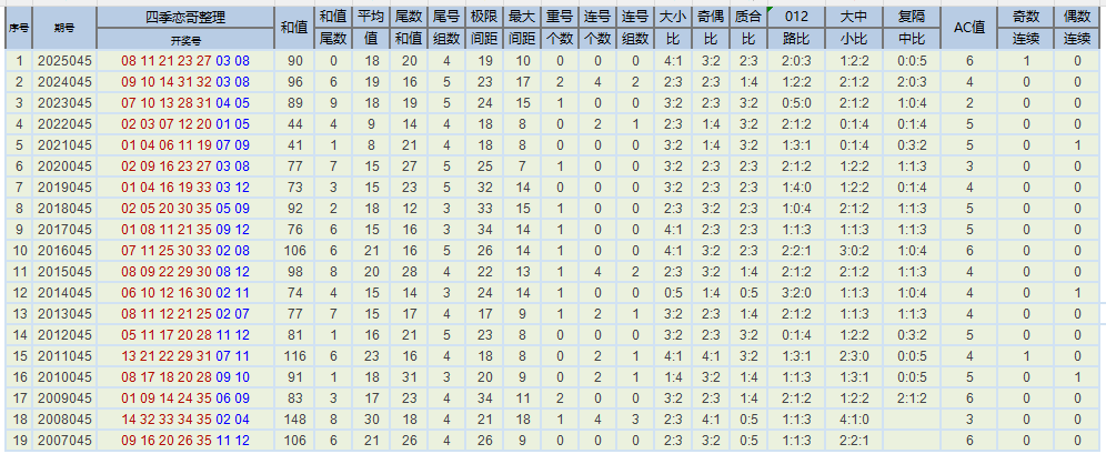下图为大乐透彩种诞生以来每年的045期各类数据以及历年同日期开奖数据,各位大佬及彩友们请拿走~