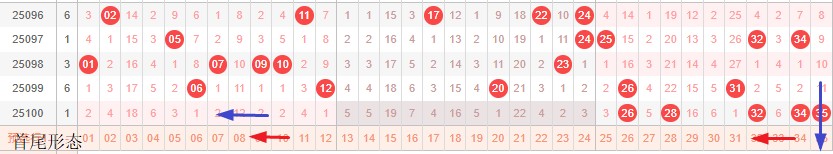 如图所示:首尾制约平衡组范围依次为:推推推,推推? 本期形态范围优先选择红色色左推首尾。由于上期号码处在首尾换4然后中间右推本期交换首尾移动空间,是利用拉伸形成0连号形态,还是左推首尾形成空间填空即为走势正反,主力形成红色左推首尾。