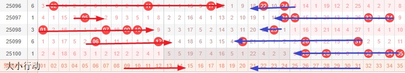 如图所示:体现的是3个局部走势的发展周期,圆圈为密集处的填空,本期定性为新局部走势3期修饰真实目的空间主力填空第1期,定性蛋跨25-35,真实空间为1-25,本期就是补走势点位,需要3枚或者2枚才能解决问题,合并空间在3区,代表本期大号多开。