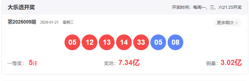 2026009期大乐透开奖号码:
