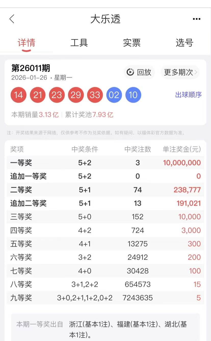 2026011期大乐透开奖回顾:
