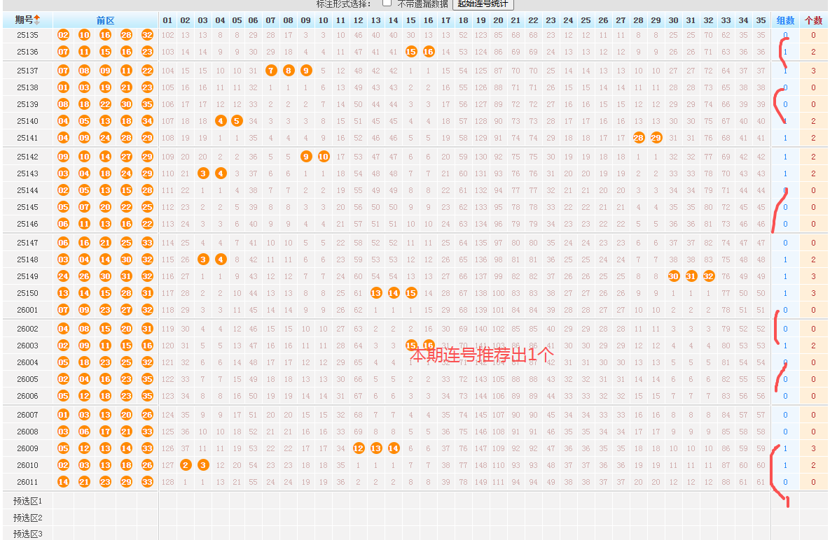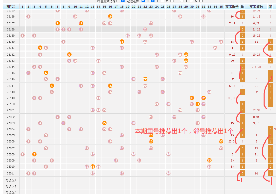 18、本期前区不看7尾,就是07 17 27,个人不看,喜欢可防。