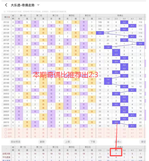 4、奇偶比:上期开出4个数,出1个偶数,奇偶比为4:1,整体看奇数强势,本期关注偶数出号,本期推荐出2:3。
