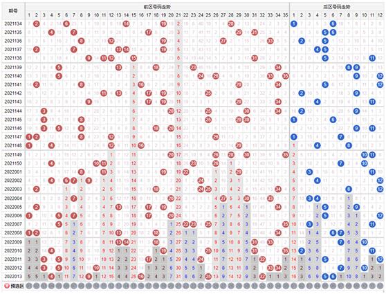 此时看到上面的图表,依然是看到最新的数据2022001期开奖号码是08 11 19 22 29,当期跨度为29-08=21,此时可以看到跨度尾数为1,期号尾数也为1,此时可以取尾数相加的结果就是1+1=2,那么002期就可以排除胆是02 12 22 32,来到002期开奖号码是04 06 07 09 24,排除02 12 22 32成了,这个就是跨度与期号尾数两两相加的效果。