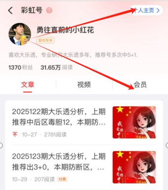 更新一起彩APP至最新版本,进入勇往直前的小红花会员专区点击文章购买会员