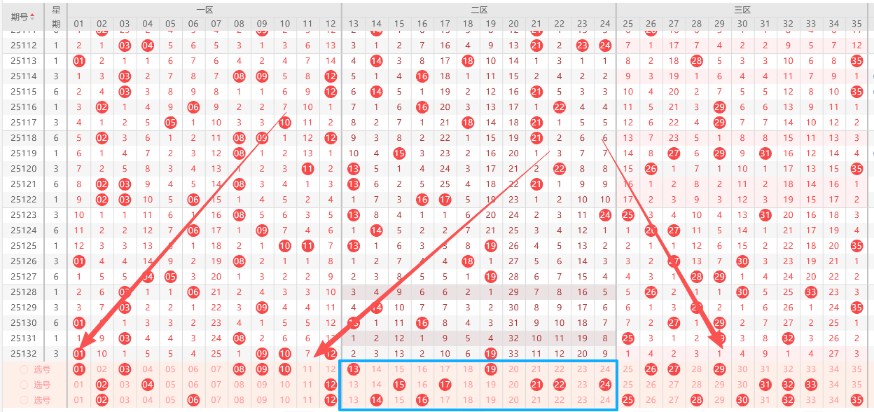 本期3区号码,总体分析如下(蝴蝶根据概率算法,结合大数据统计,总结出一套不错的算法,总体的3区分析如下):