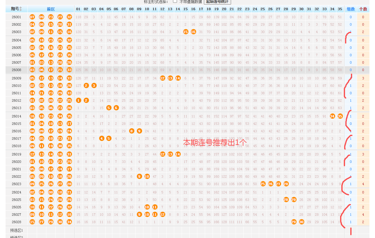 1、前区重号走势:上期前区开出0个重号,近39期出号个数为:0-1-1-1-0-1-1-1-1-1-1-2-0-2-1-0-0-0-0-0-0-1-0-1-2-0-1-1-1-1-0-1-0-0-0-1-0-0-0--0-0--0-1-2-0-0-0-2-0,根据出号规律出020后紧随出-1-2-0-2-1-0-1-1-0-2-1-0-0-1-0-1-1-2-1-0-1-1-1-1-1-1-0-2-0-2-1-0-1-0-0-0-0-2-1-0-0-1-1-0-1-0-1-1-0-0-0-1-0-0-2-1-0,本期推荐出1个。