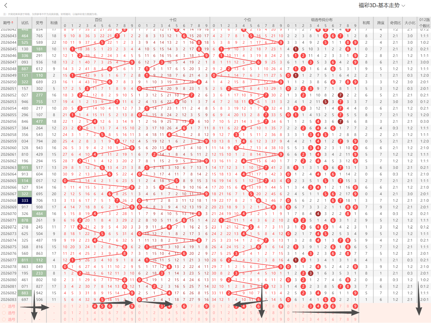 ①百位:上期开出大号奇数5号,在历史开奖记录中显示一般正常的奇偶周期平均在1~3期为普遍现象,奇数连续开出2期上期为2路号码,依据奇偶以及012路周期性规律的转变特征点即本期0路号码有开出的趋势2路号码注意预防。