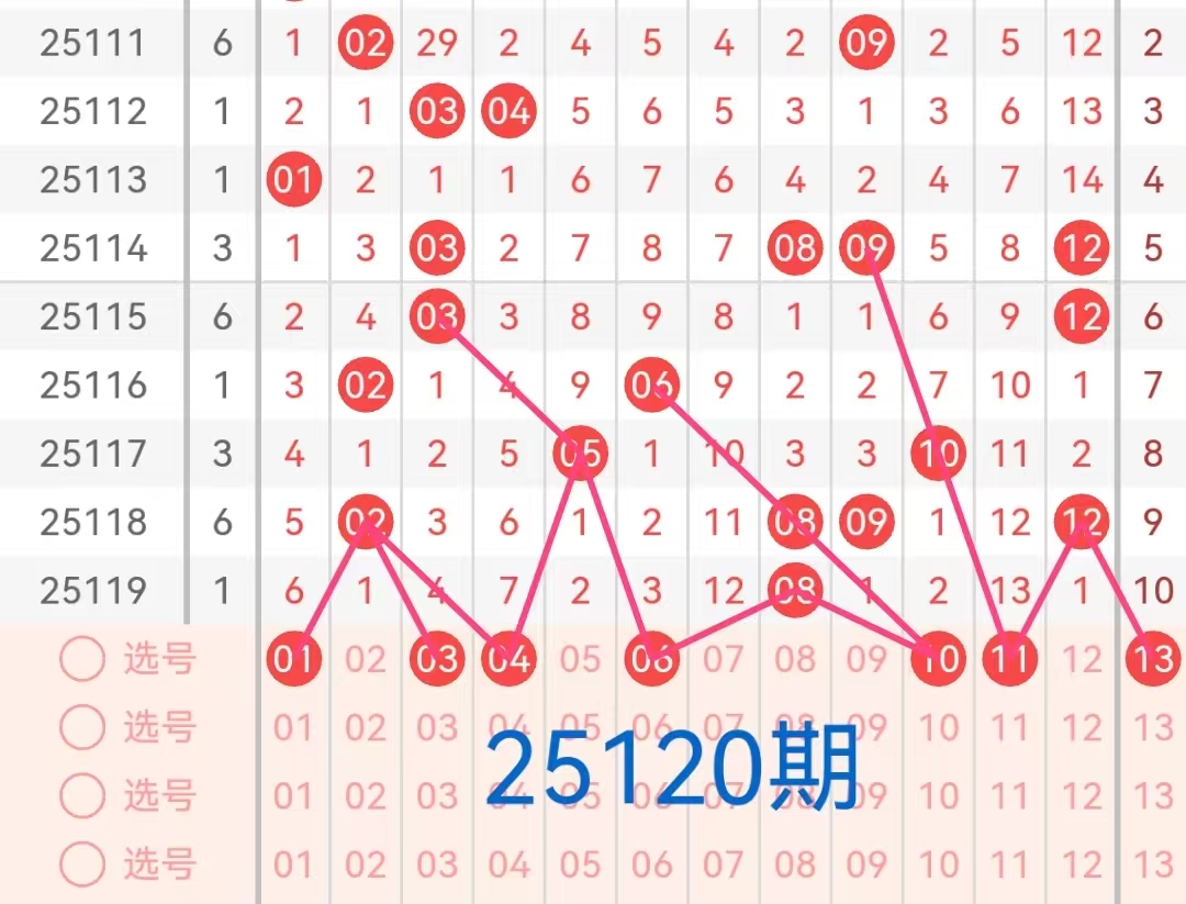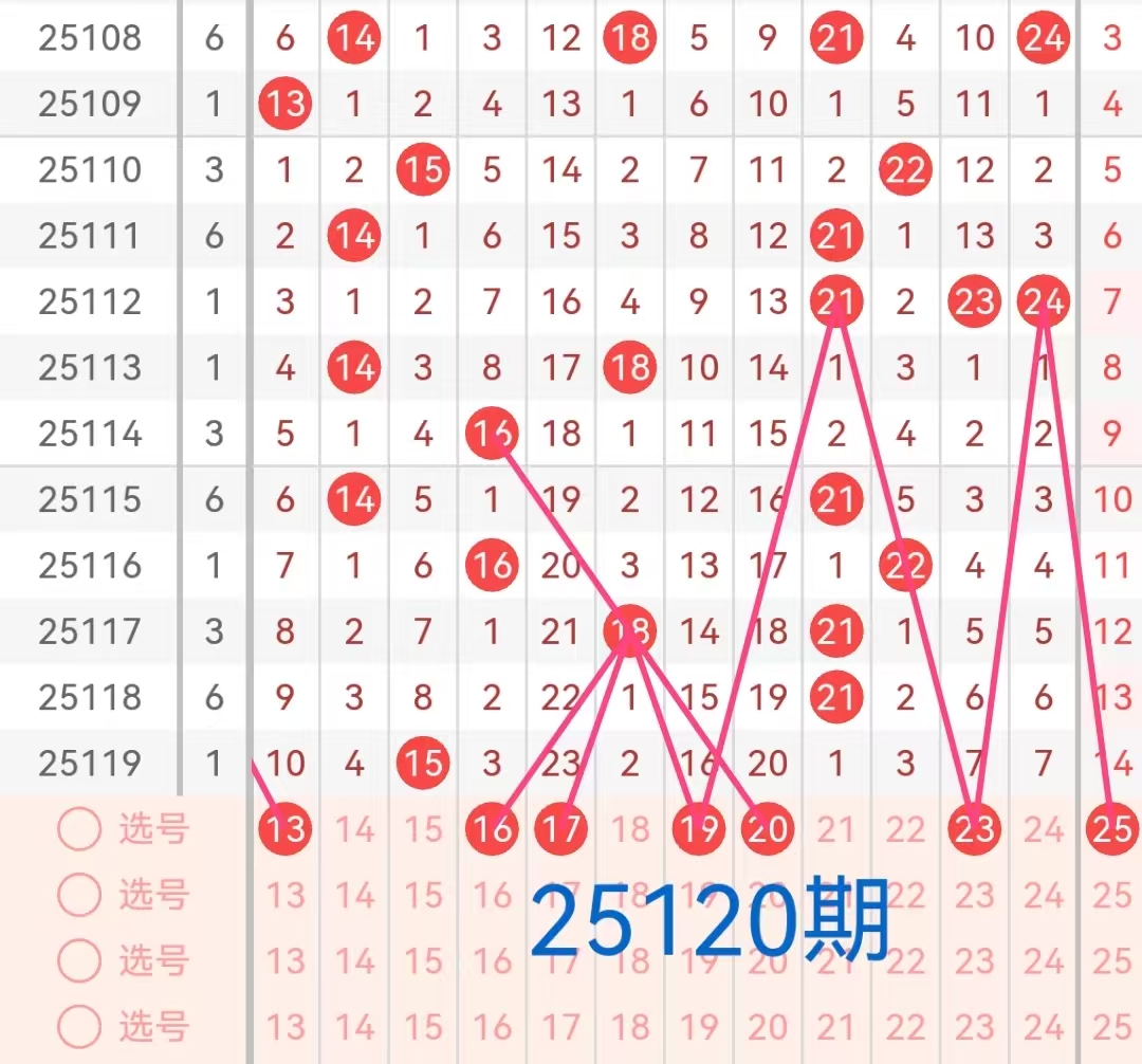 2. 二区(13-24):上期该区间开出1个号码15,号码15在遗漏8期后开出。根据历史开奖来看,近期该区间活跃度较低,本期预计会有1-2个号码会继续开出。特别是那些遗漏次数较大的号码和该区间内近期表现较好的号码,如13、16、17、19、20、23这几个号码在走势上表现出一定的稳定性,且与前几期出号形成呼应,有望出现在本期开奖中。
