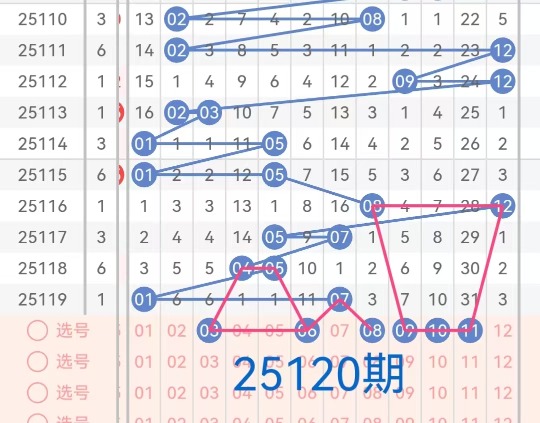 2. 凤尾号码分析:凤尾号码(前区最大号码)上期是31。这是一个偏大的凤尾,过去十期内,凤尾号码多集中在18到35之间,其中3字头号码表现较为活跃。因此,本期应重点关注18-35区间的数字,特别是号码23、25、26、32