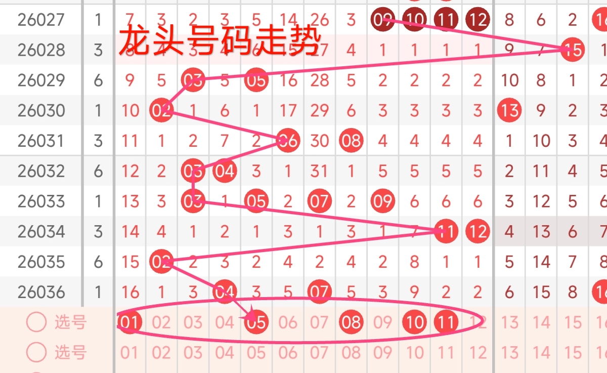 龙头号码走势分析: