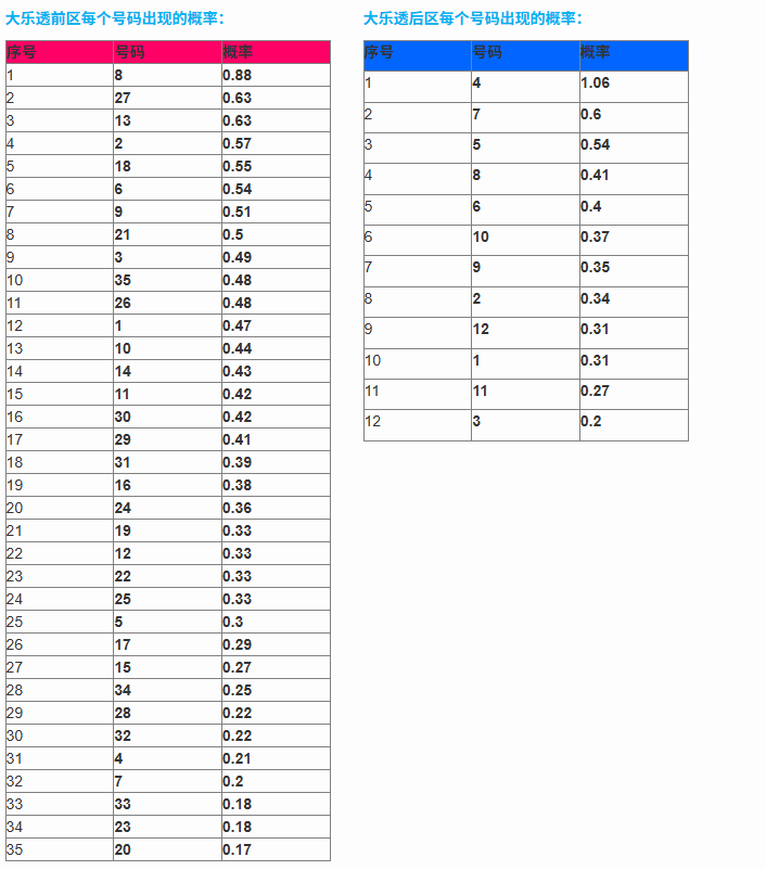 大乐透算法各类号码分布图