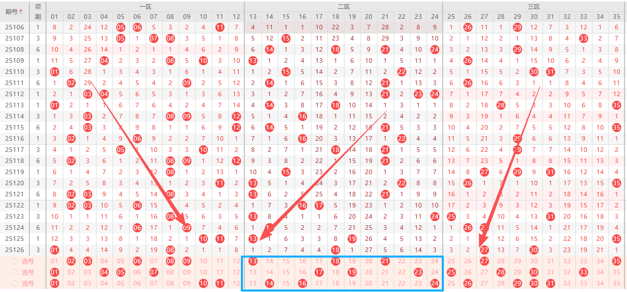 第二区:第二区号码里面,本期看好的号码有13,16和20,另外防22和23这几个号码;