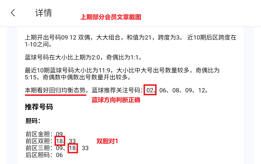 大乐透的会员文章每个区间给出更详细的分析,增加了重码,连号分析。