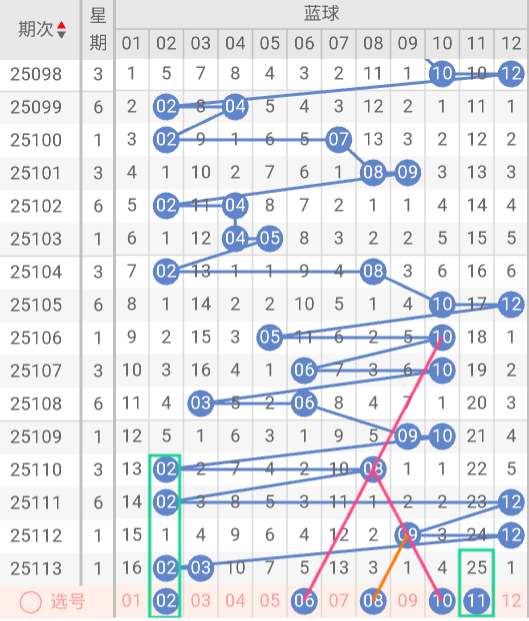 蓝球:02、06、08、10、11