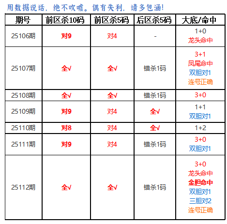 上期前区杀10码对7,免费文章中杀5码对3,双胆对1,大底命中1+1,本期再接再厉!