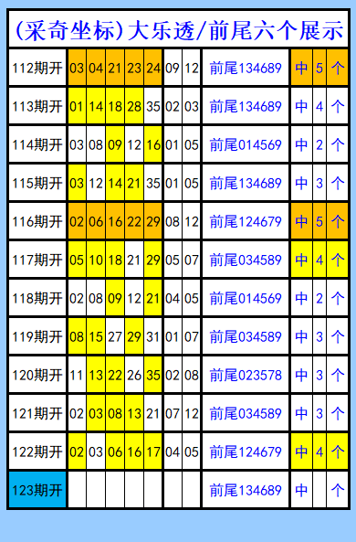大乐透第123期图文(采奇坐标),前尾六个