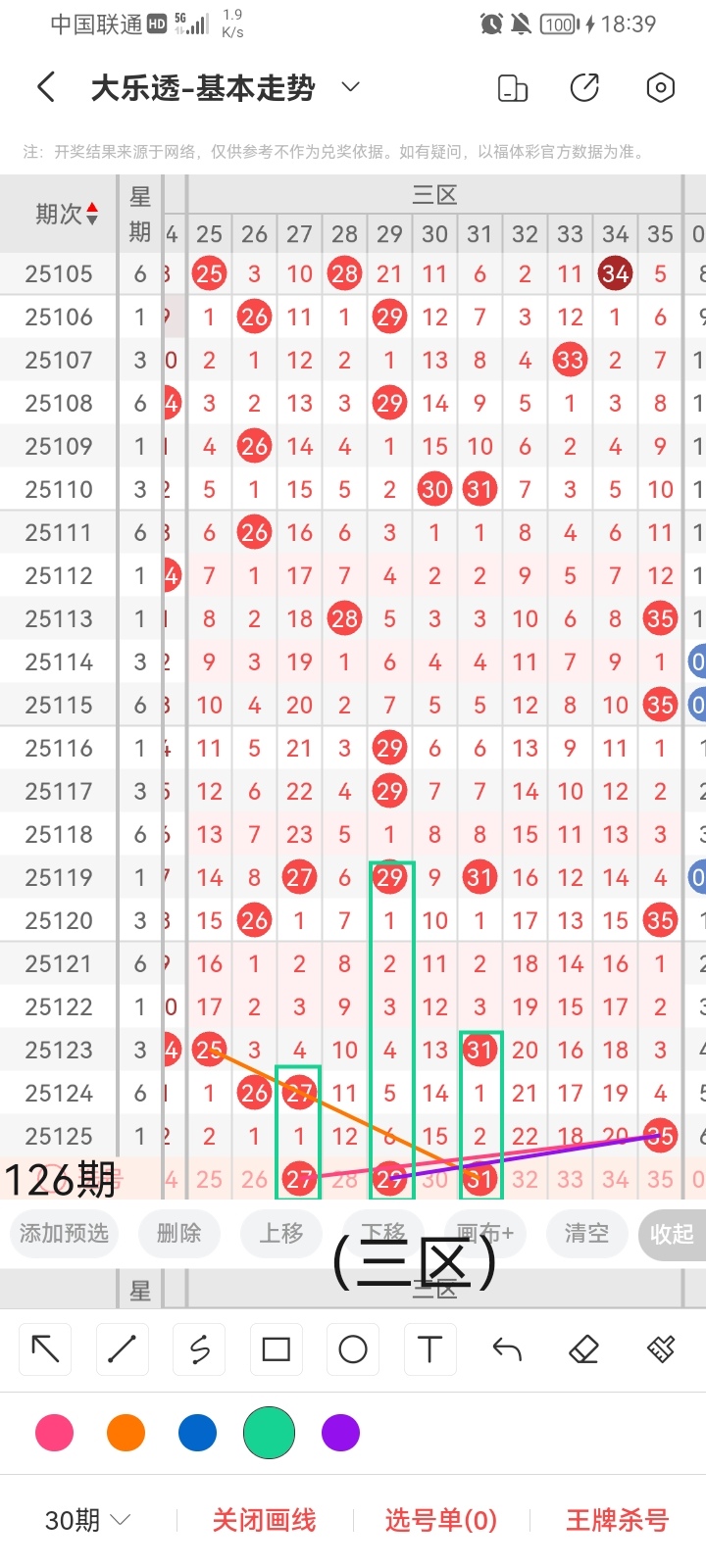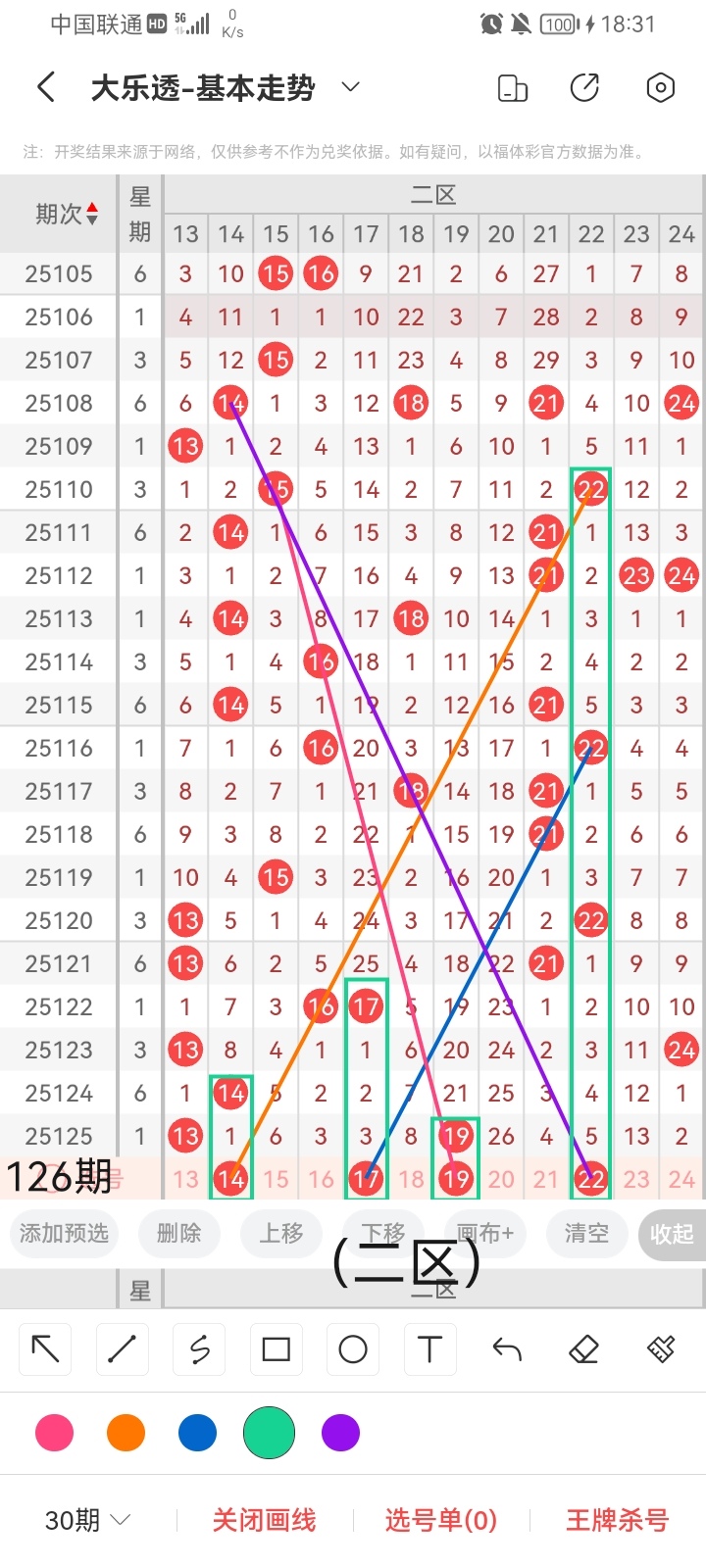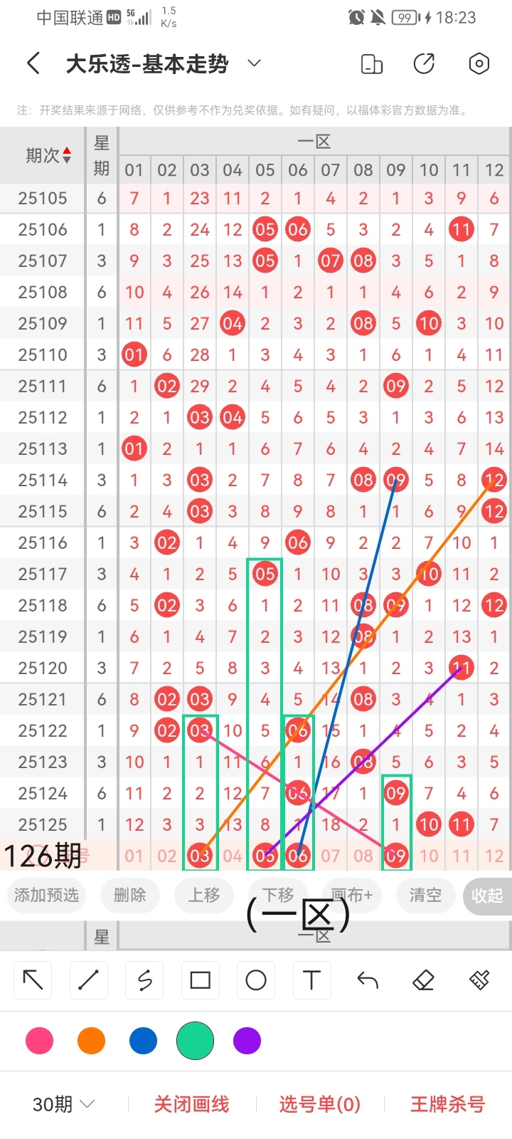 通过以上对上期的简单回顾,下面进入大乐透第2025126期(下面简称本期)的选号分析: