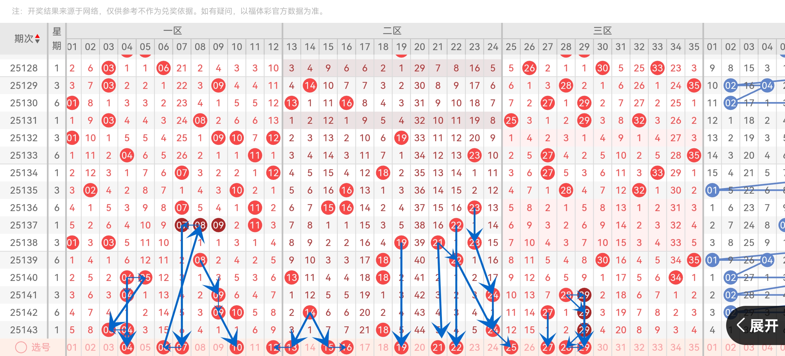 连码走势 :开出一组连码(03, 04),显示连码持续活跃(近5期出现4次)。连码热点区域从前期的中后段(27-30)转移至前段(03-04),但中后段(如28-29)热度仍在。