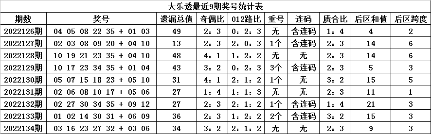 大乐透第2022135期:前区关注全合组合,后区防全大