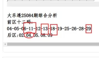 超级大乐透085期分析,上一期文章前区推出4码,后区一码