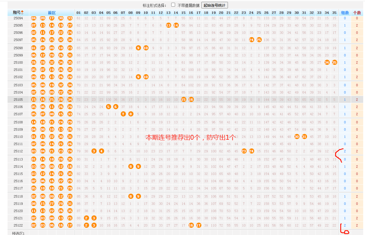 (这个数据上期出了2个,本期防出1-2个)
