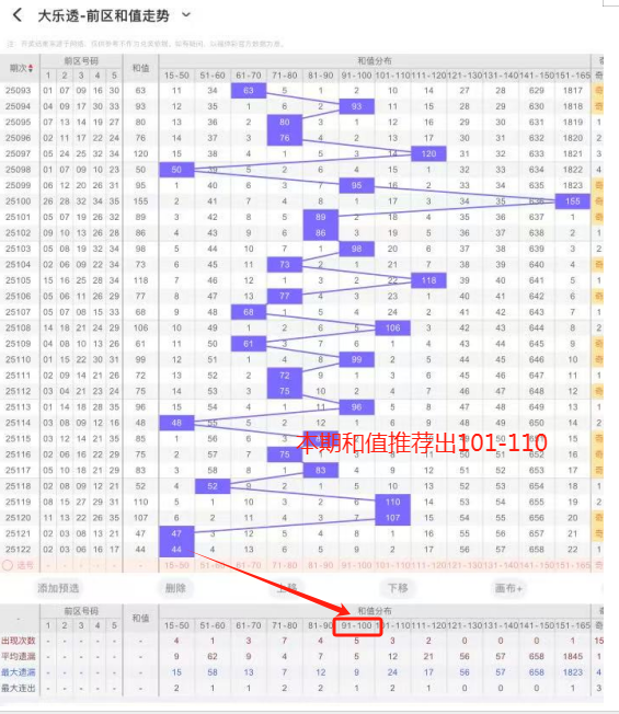 前区奖号开出2个重号,连号开出2个,奇偶比为2:3,和值为44,跨度为15,三个区的区间比为3:2:0,后区开出0个重号,出1个大号。