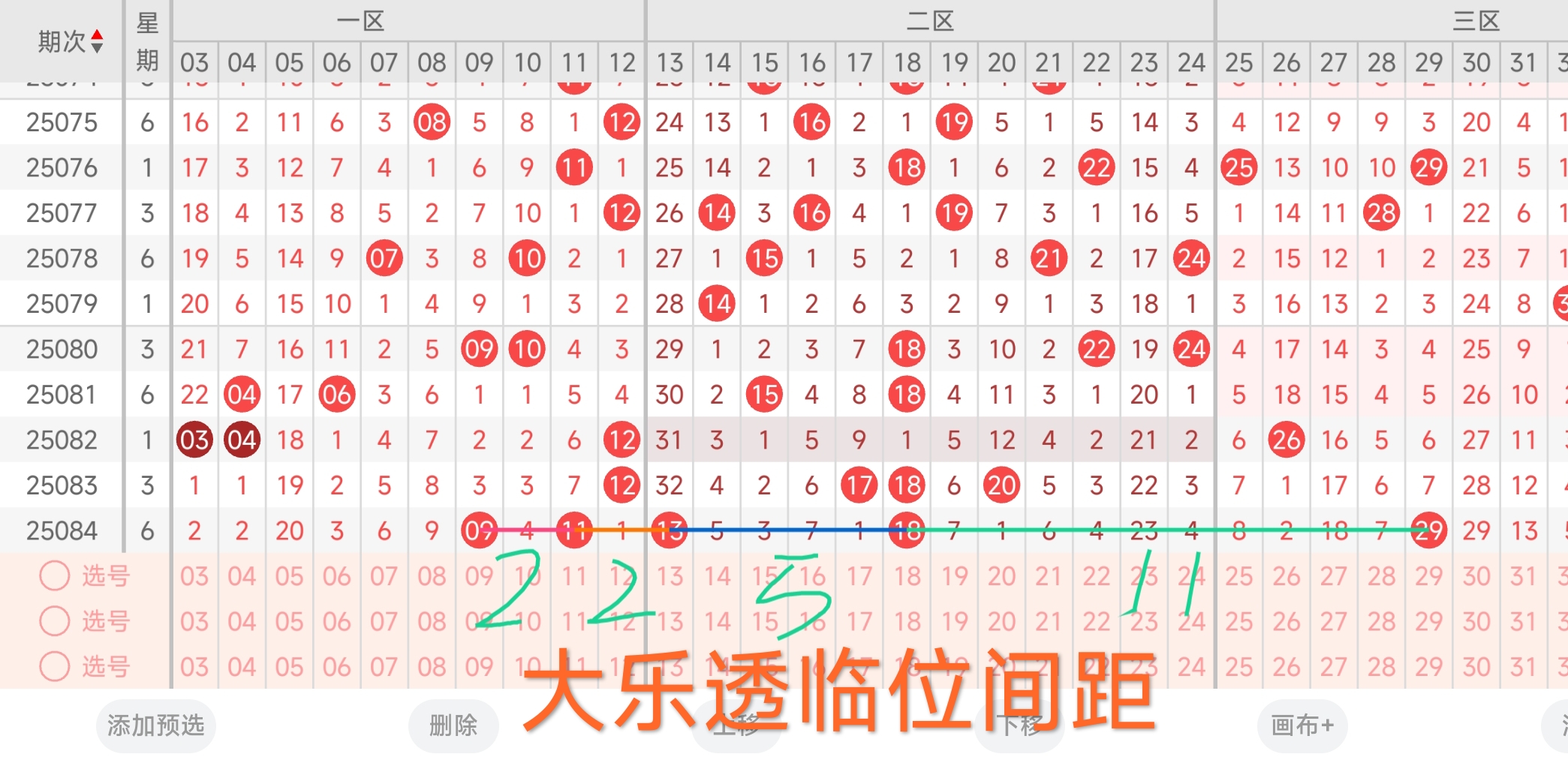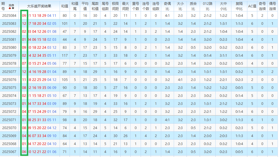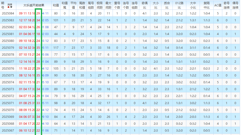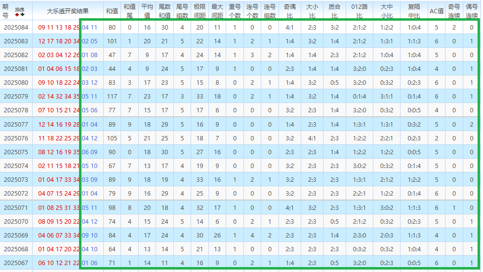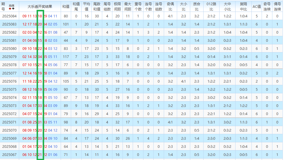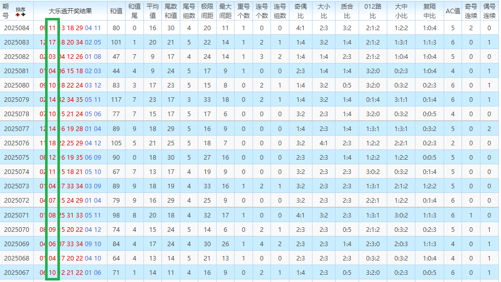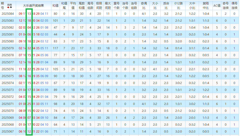 首先回顾大乐透25084期开奖结果:09 11 13 18 29+04 11。