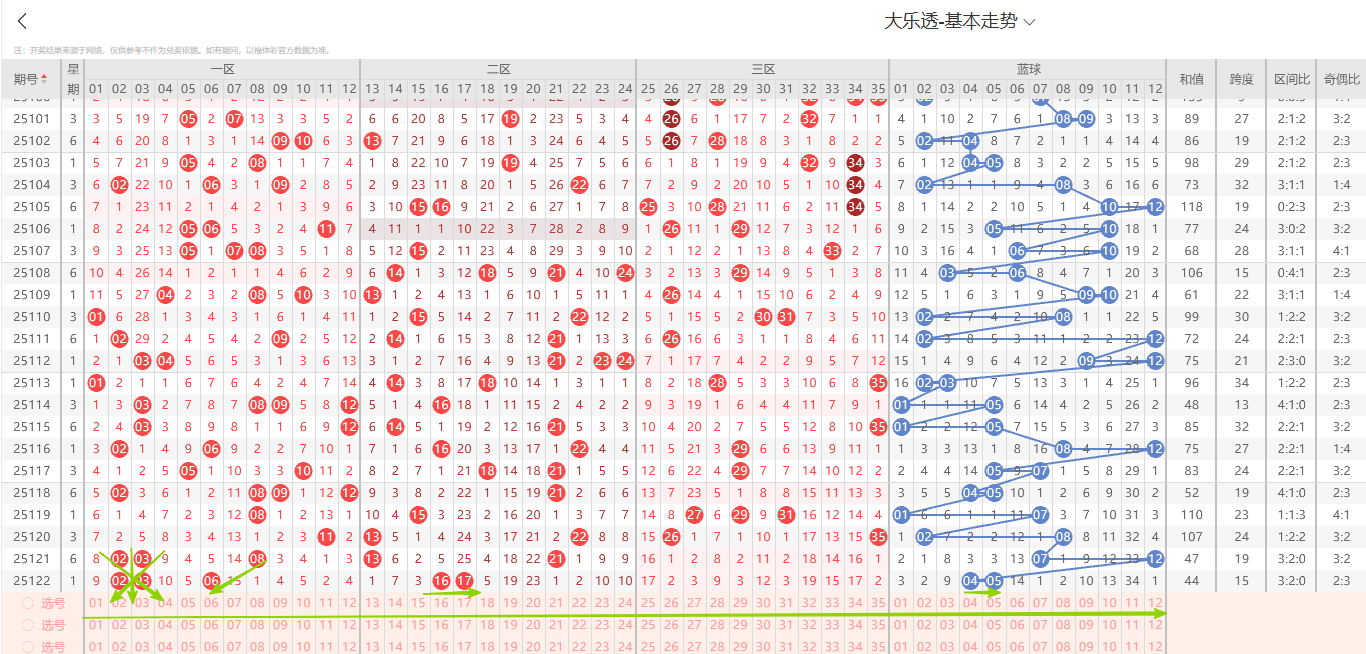 ③和值:结合对区间的比例数据来看本期和值参考51~80范围参考