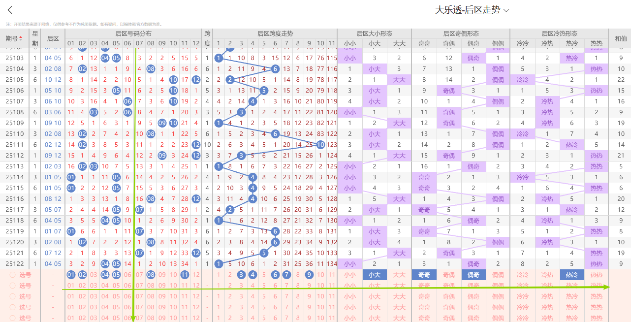 从后区整体走势来看在大部份开奖结果中频繁有重码或者邻码的开出,根据重码邻码出号频率本期预防03 04 05 06 07中有号码落下。综合后区本期参考关注01 02 04 05 11。参考为主祝君中奖。有关更多选号思路详细解析下午15:00直播间不见不散!!!
