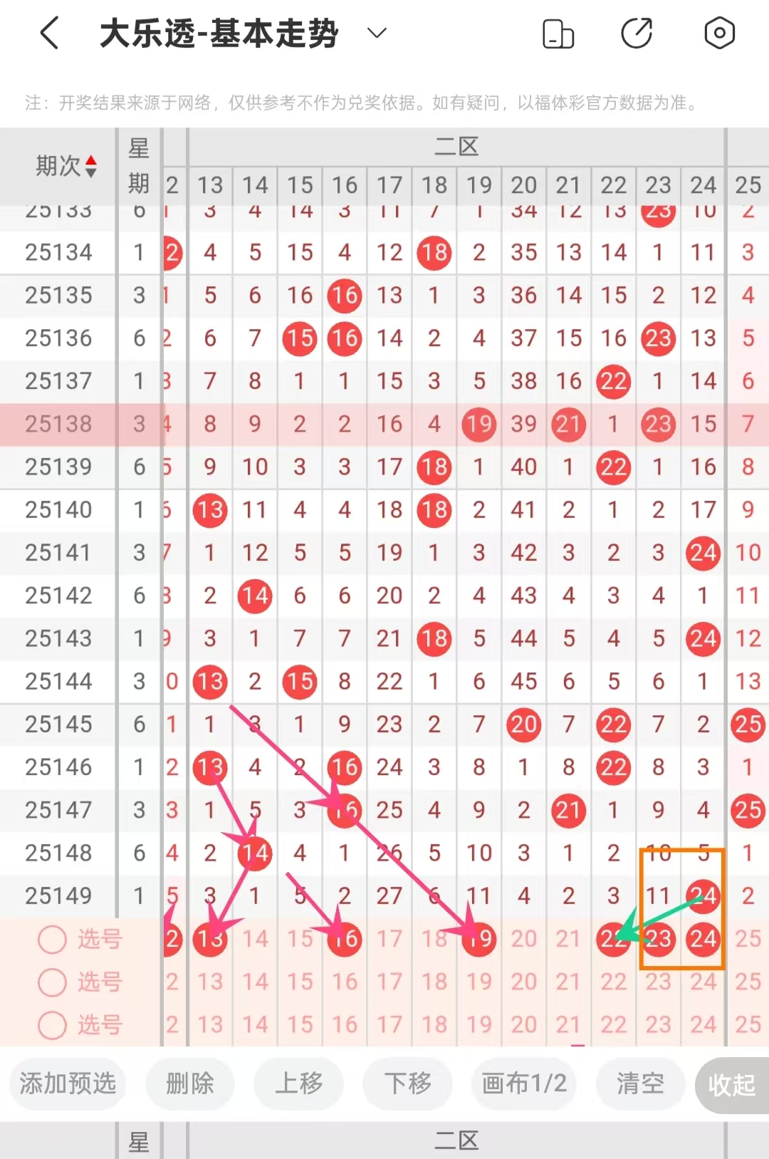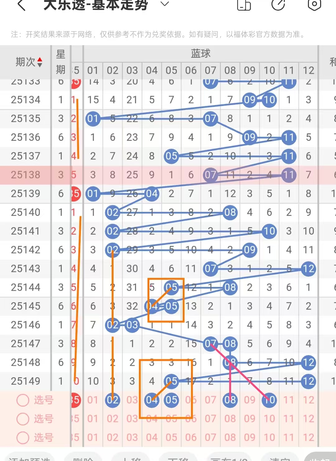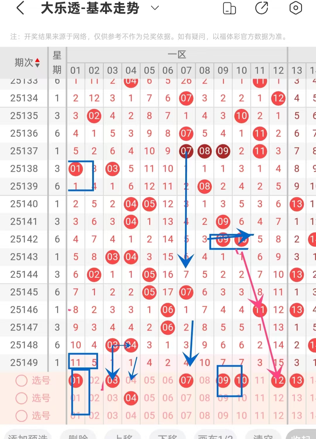 蓝球我是以和值选号的,上期开出17.本期建议选偶数,
