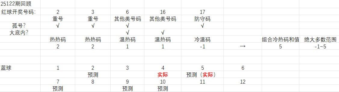 注意5个红球的组合冷温热码和值范围保持在-1~5