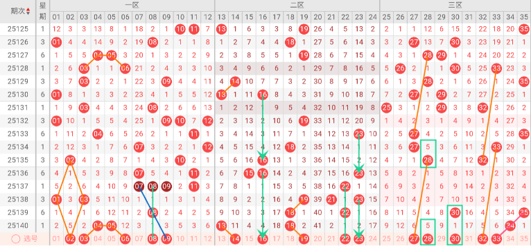 三区(25-35)分析:上期该区开出号码 30 35,近10期占比24%,与上期相比-2%。本期三斜连号趋势:33,无隔码斜连走势。清晰地揭示了一个完整的断区-启动-延续的回补周期。近两期共开出3码,标志着回补已确立,~。在~模式下,开出1个号码是基准情景,但需警惕~开出2个的稍强走势。综合判断,本期暂看1个,防2个。上期仅出大号34,显示~,并以~主导。推荐关注号码:27、28、30、32、33。