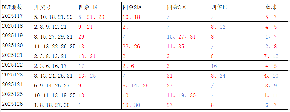 如图,红色字体是重复开出的号码,即为热号。蓝色字体是开出一次的号码,即为冷号。以近10期为一个分析周期:4余3区、4倍数区,走势较冷;4余1区、4余2区,走势较热。依据久热必冷,久冷必热的规律,本期重点关注:4余1区、4倍数区,区间号码可能开出1-2个;4余2区、4余3区,区间号码可能开出2-3个。区间冷热号码精选:***(会员专区可见)。个人分析,仅供参考。